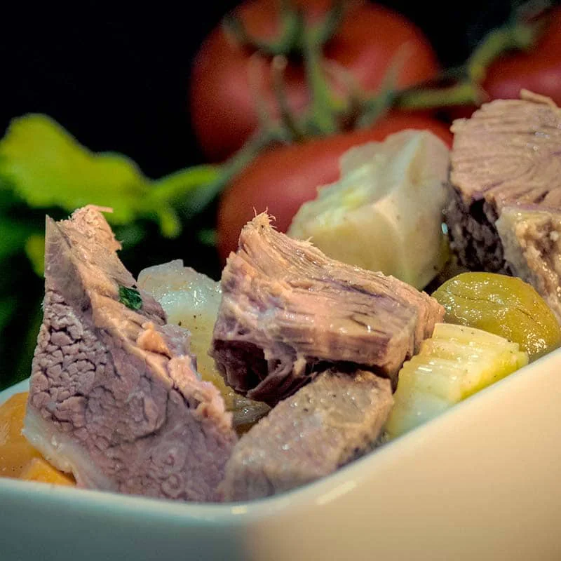 Musso e carcagnolo (letteralmente muso e calcagno) fanno parte di una tradizione culinaria millenaria, che parte dall’usanza degli antichi Greci di utilizzare le parti di scarto degli animali come cibo da vendere nelle agorà, in piazza, ai meno abbienti.