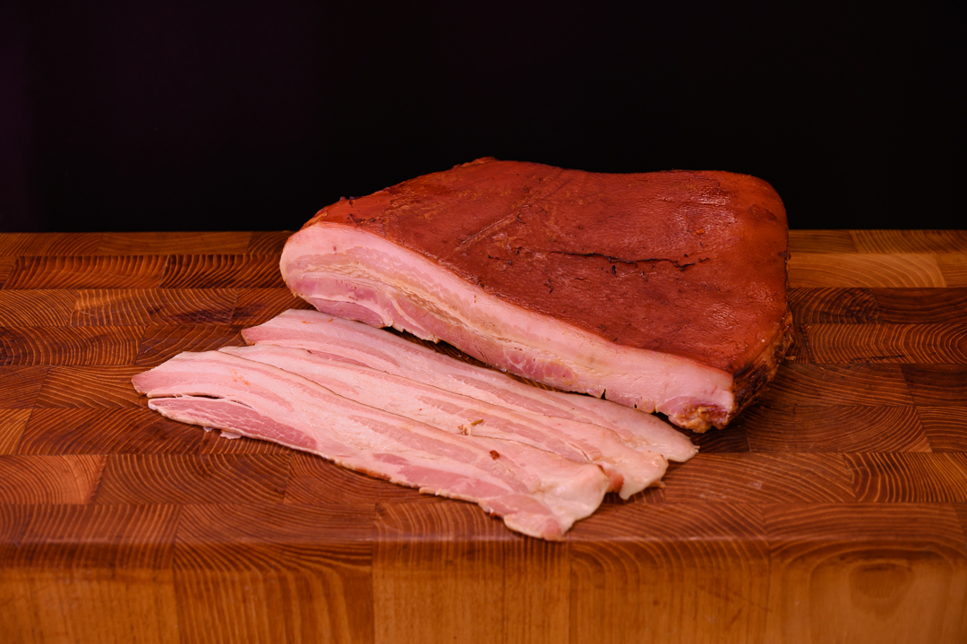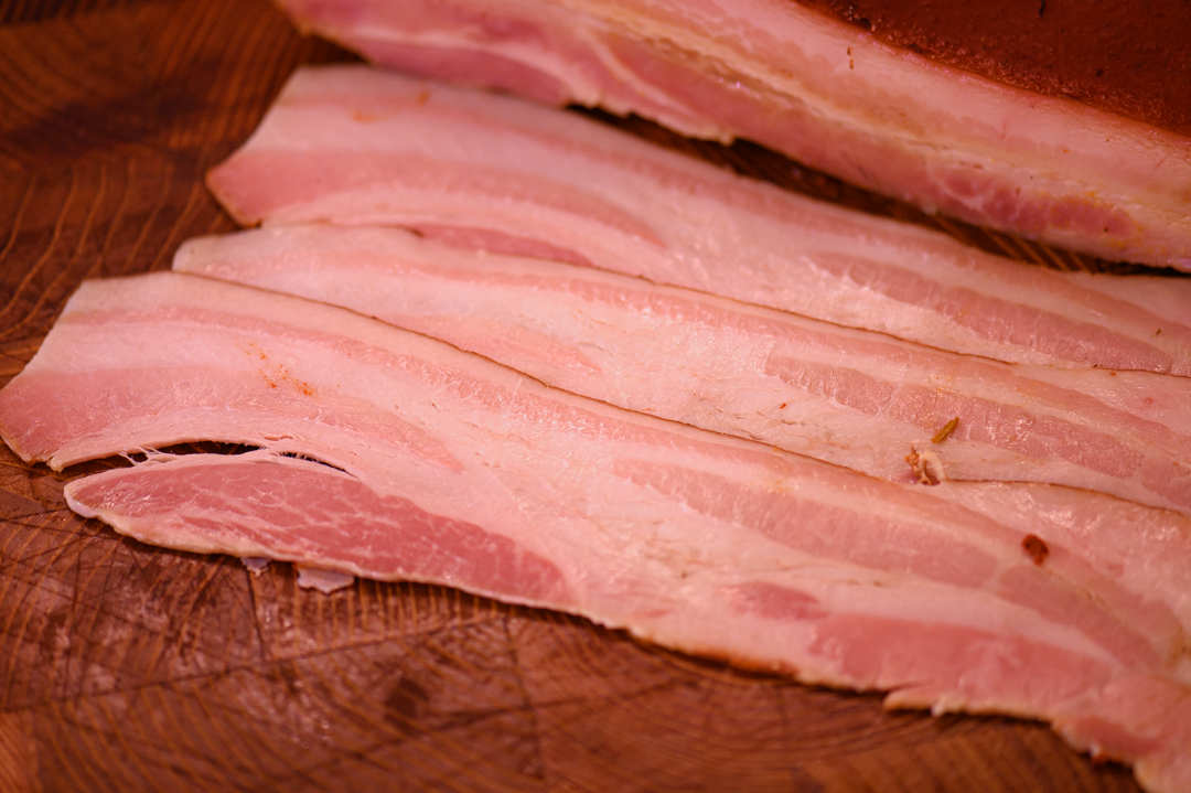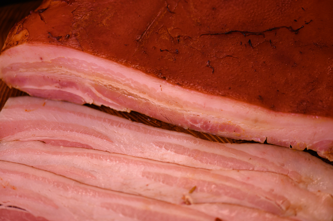 Il nostro bacon artigianale nasce da una selezione accurata di pancetta di suino e da una lavorazione lenta, come si faceva una volta. Dopo la salatura, viene insaporito con spezie naturali e sottoposto a una leggera affumicatura a freddo, per ottenere un gusto pieno e bilanciato, senza coprire la qualità della carne.