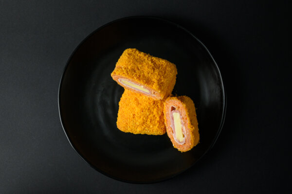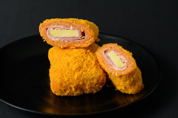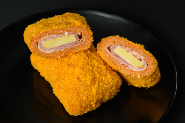 Biscotto di Pollo panato con ripieno di scamorza e bacon.