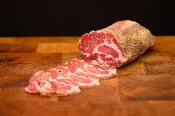 Il risultato è un salume profumato e morbido, con un equilibrio perfetto tra parte magra e venature di grasso che lo rendono succoso e aromatico a ogni fetta.