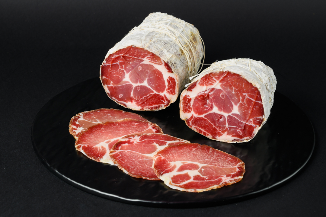 Capocollo artigianale siciliano, stagionato lentamente e lavorato con spezie naturali.