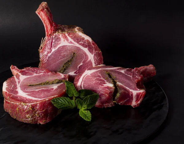 Il carrè di maiale all’emiliana si può cucinare intero su una griglia per una presentazione spettacolare, oppure tagliato a pezzi più piccoli, con una facile presa tramite la costola ripulita.