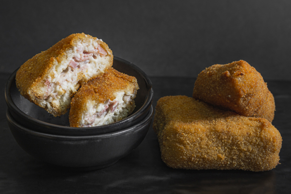 5 Pezzi di crostini mignon fritti con prosciutto, mozzarella e besciamella.