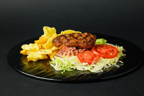 Hamburger Texano al piatto con patate fritte