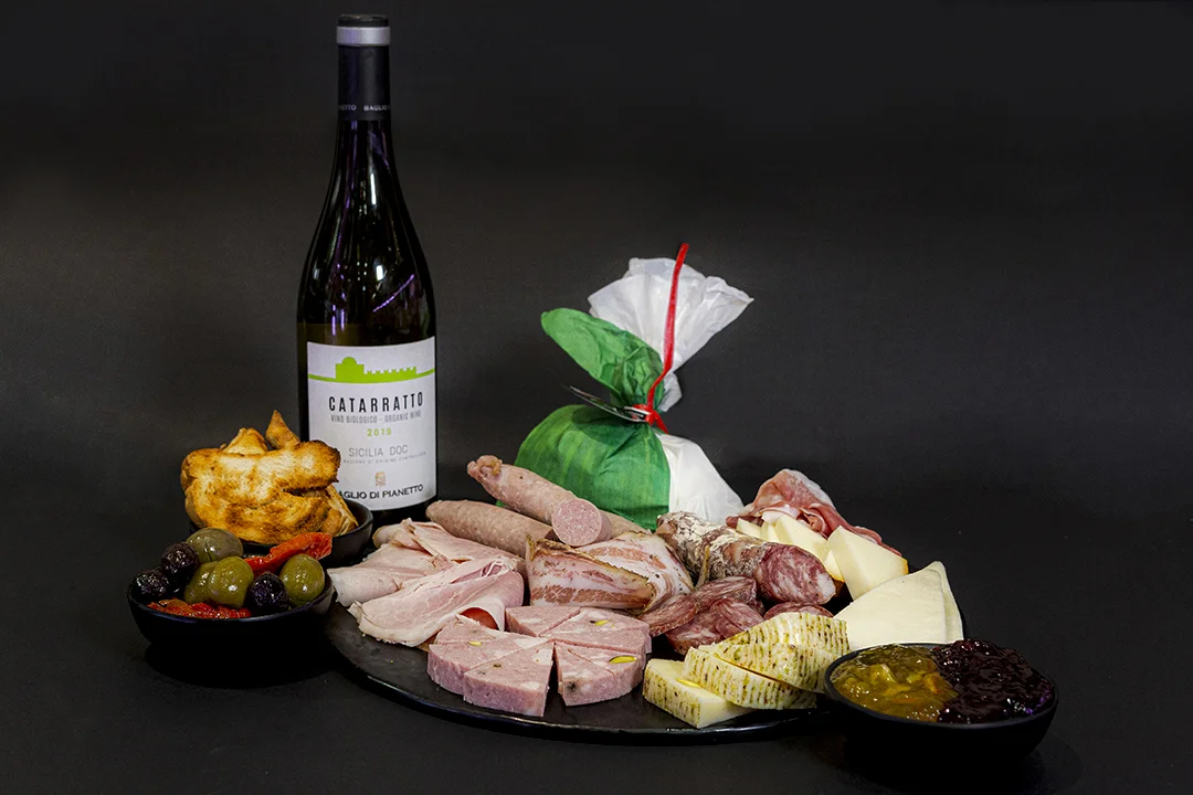 1 bottiglia da 75 cl di vino bianco Baglio di Pianetto – Catarratto e un Tagliere di Salumi e Formaggi composto da: