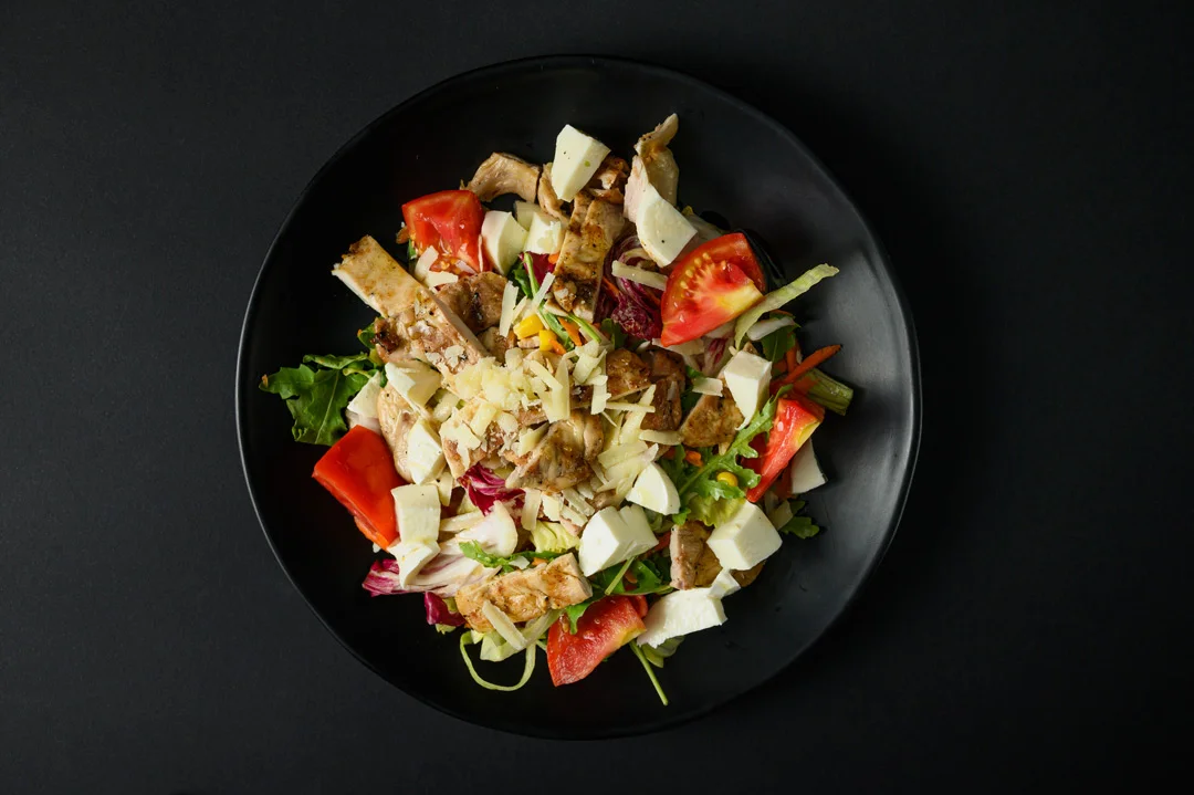Il petto di pollo utilizzato proviene da allevamenti non intensivi, grigliato e tagliato a listarelle per un perfetto equilibrio con le verdure. Aggiungiamo ingredienti genuini come insalata fresca, pomodorini, mais, olive o altri ortaggi di stagione, per un piatto bilanciato e saporito.