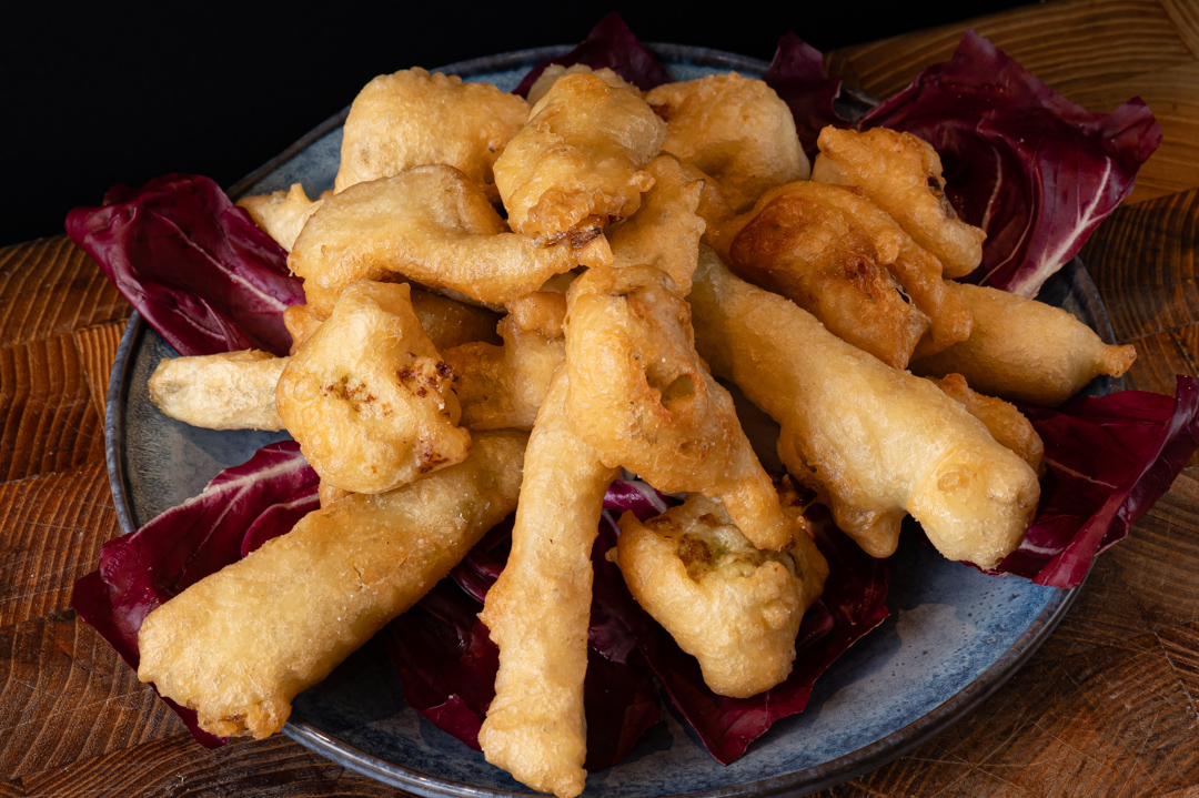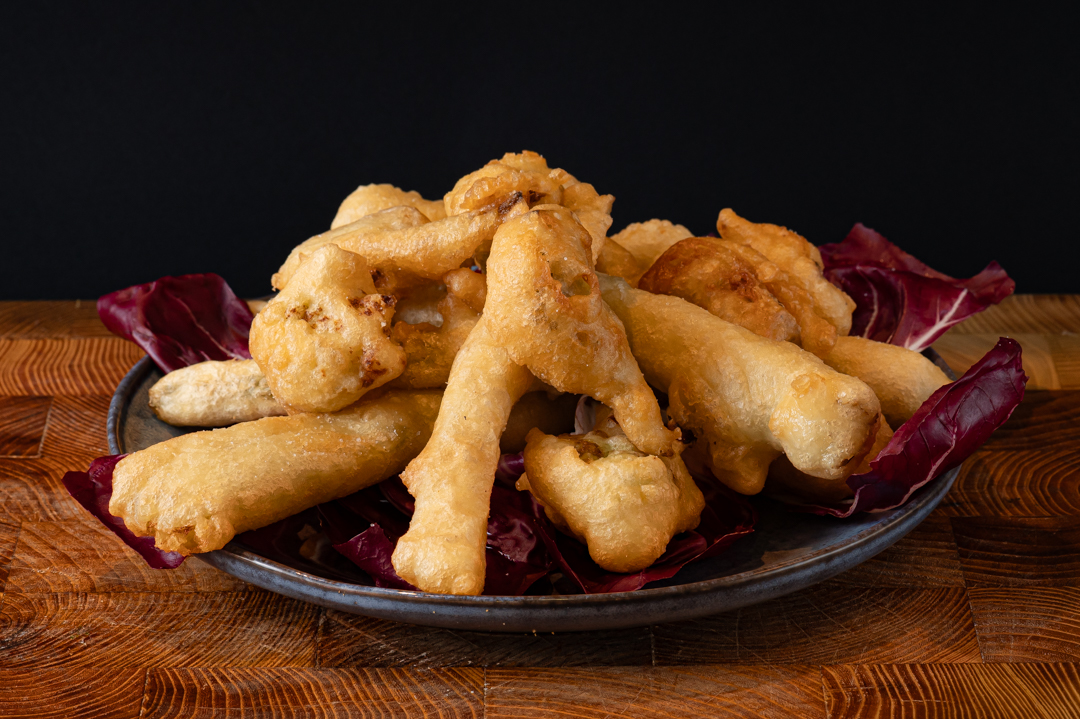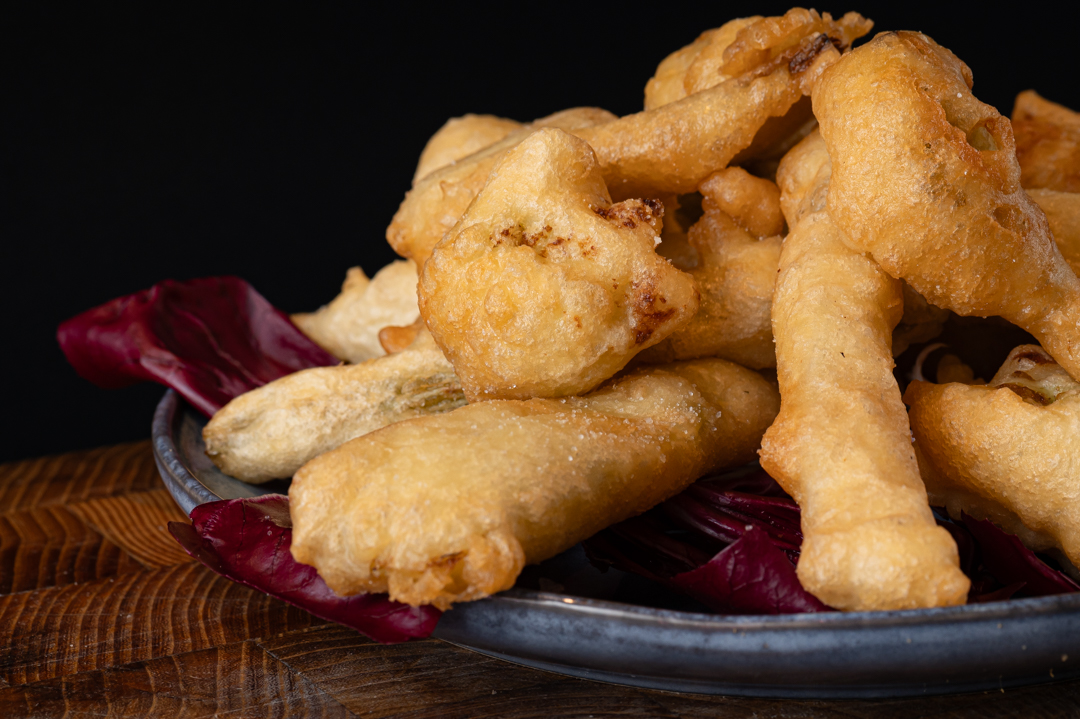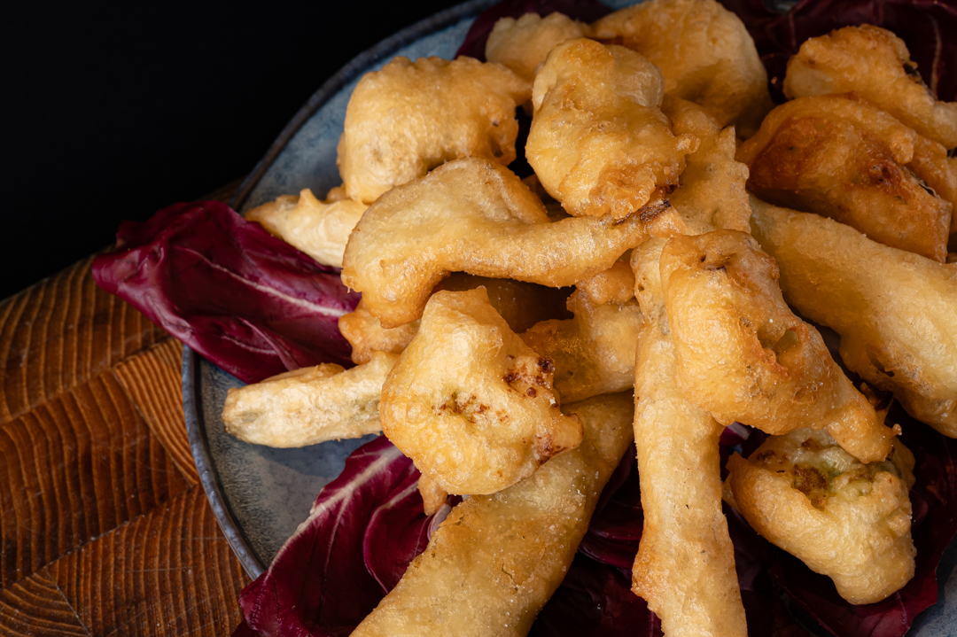 Mix di verdure in pastella: cardi, broccoli e carciofi.