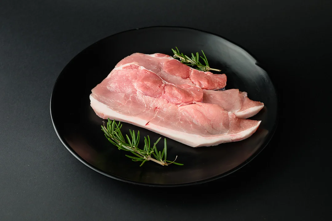 Il Mollame di suino a fette è una parte del maiale quasi del tutto priva di grasso, tagliata a fettine sottili di circa 15-20 cm.