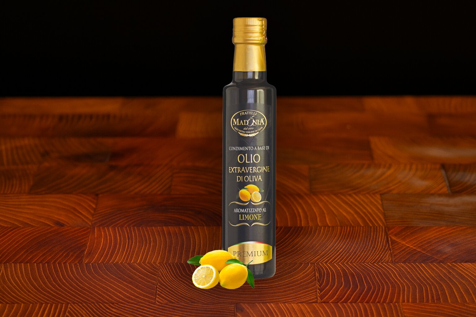 Olio extravergine d’oliva siciliano aromatizzato al limone.