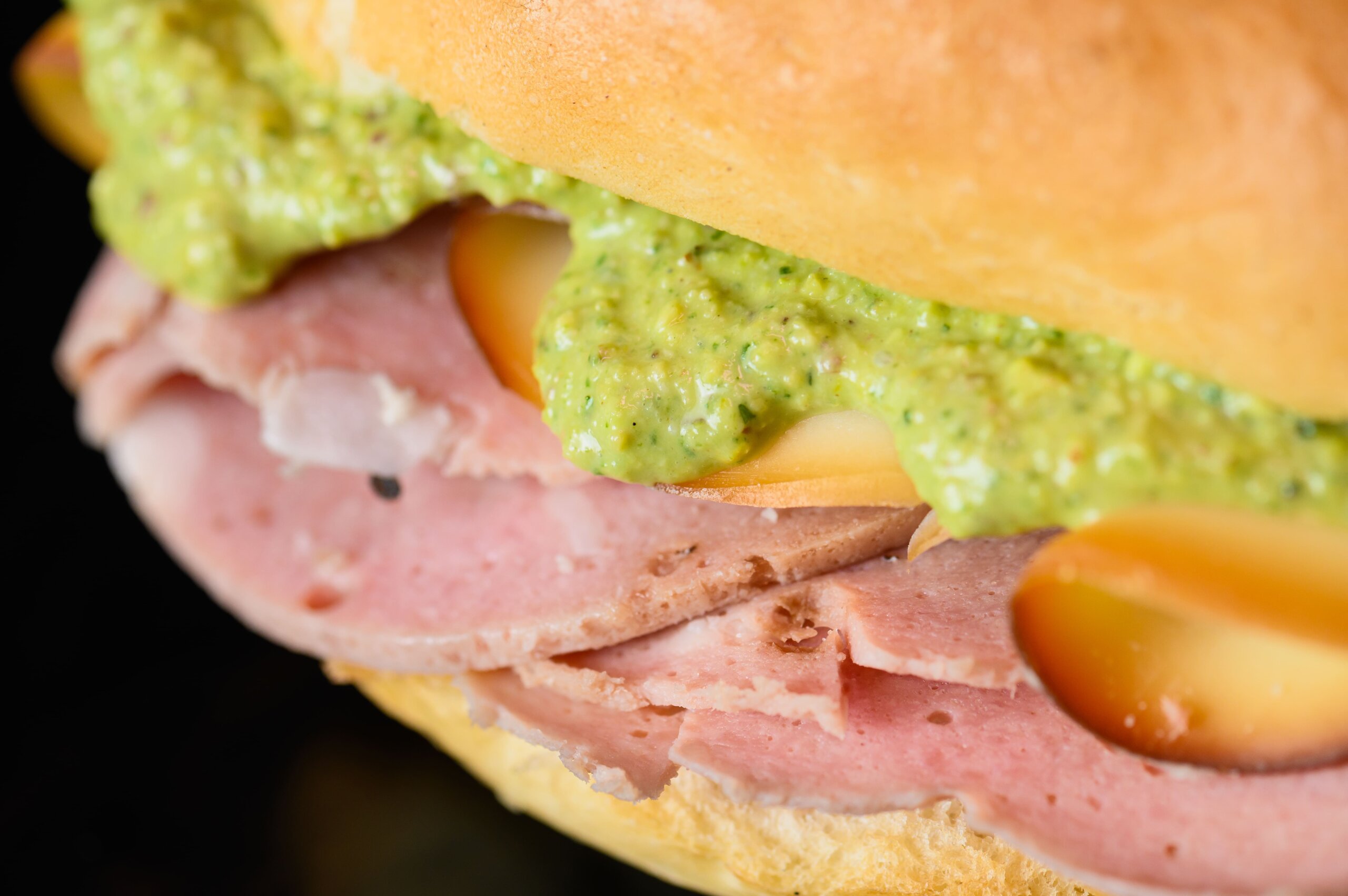 Esplora l’esplosione di sapori del nostro panino gourmet! Gustosa mortadella si unisce alla cremosità del pesto di pistacchio e alla delicatezza della scamorza affumicata. Un’esperienza gustativa unica che soddisferà i palati più esigenti. Ordina ora e delizia il tuo gusto con il nostro panino irresistibile!