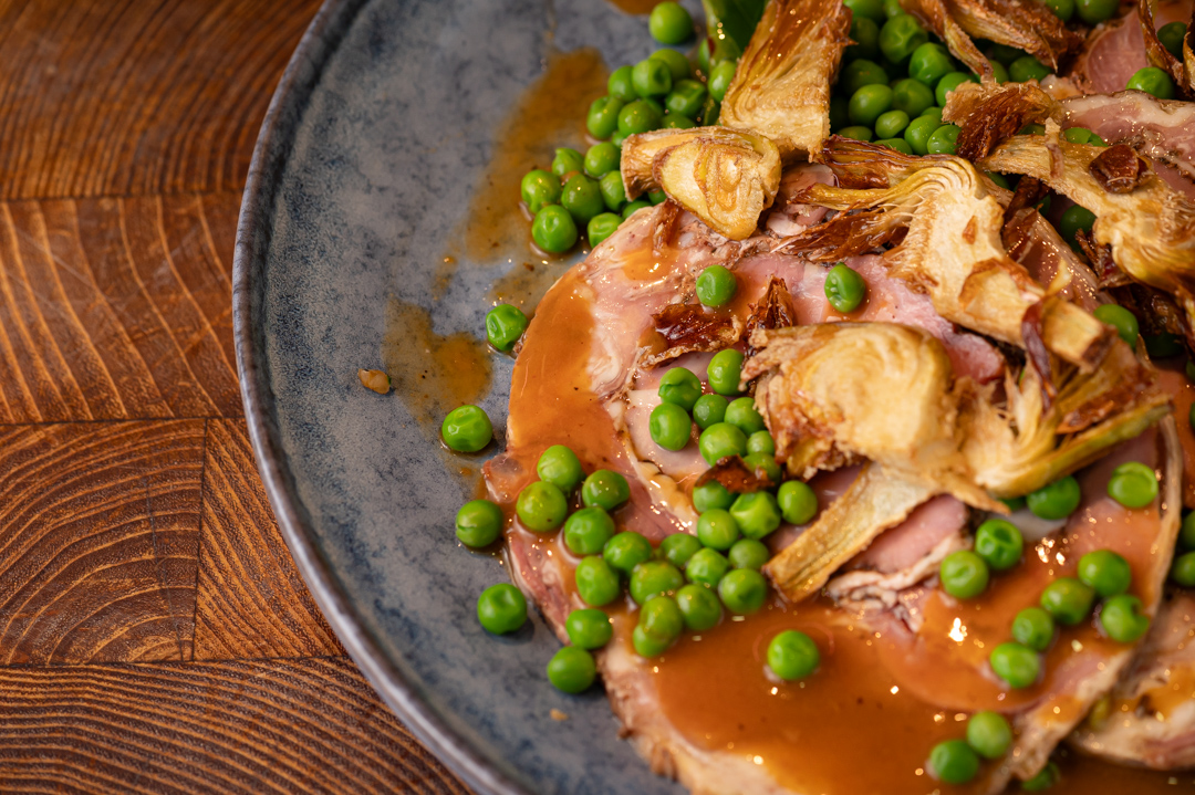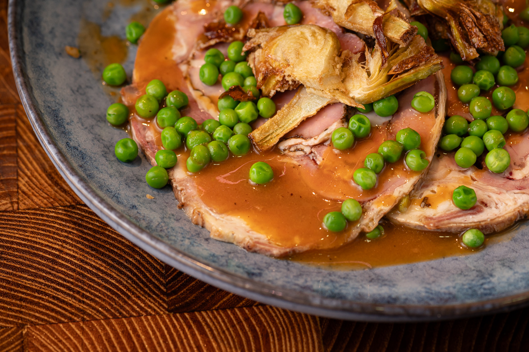Rollè di agnello con carciofi e piselli: un secondo delle feste completo, da affettare e portare in tavola con effetto “wow”.