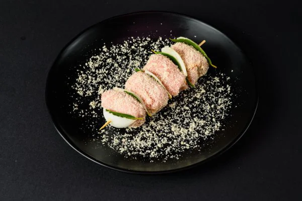 Negli Spiedini di maiale la classica carne di vitello degli spiedini è sostituta dal maiale, con fette prive di grasso battute finemente e arrotolate su se stesse.