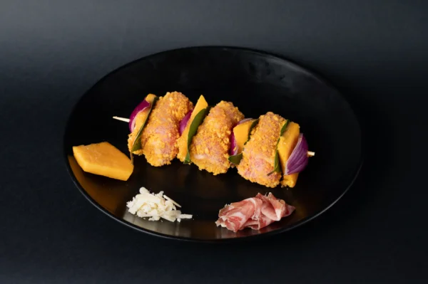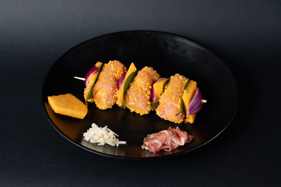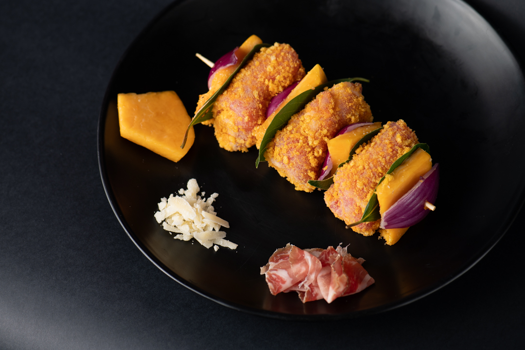 I nostri spiedini di suino con Zucca Rossa, Parmigiano e capocollo artigianale nascono da ingredienti genuini e da un’idea semplice: portare in tavola un morso di Sicilia.