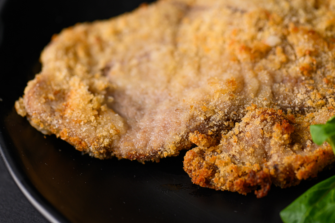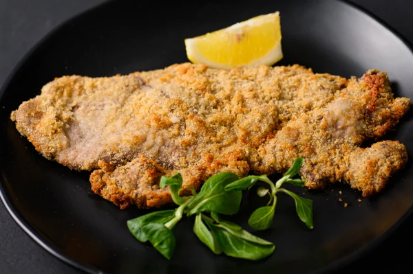 La carne, scelta con cura, è vitello italiano di alta qualità, selezionato con la stessa attenzione che mettiamo in tutte le nostre preparazioni artigianali. La panatura, realizzata con ingredienti semplici, dona croccantezza e un sapore che ricorda le ricette della domenica in famiglia.